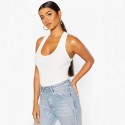 Aparent simplu, acest body nu chiar atât de basic este la mare căutare. Dispune de o țesătură fină și elastică cu nervuri verticale, bretele normale și închidere clasică de tip popper. Făcând parte din categoria de styling versatil, poate fi asociat oricărei ținute.
