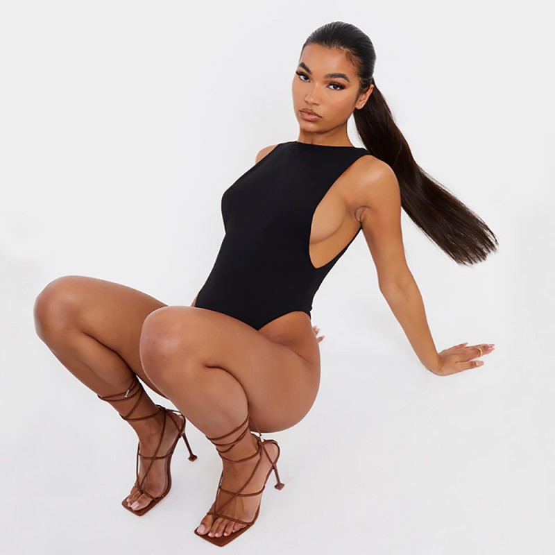 Acest body este un vis minimalist. Prezintă un material creponat negru, cu un decupaj lateral al sânilor care cu siguranță va atrage toate privirile. Acoperire medie la spate și închidere clasică tip popper. Micile detalii fac diferența.