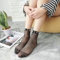 Șosete negre tip plasă cu ochi mic, realizate din fibre elastice. Bandă elastică prevazută în partea superioară, accesorizată cu perluțe albe pentru un plus de eleganță. Pentru o rezistență de lungă durată șosetele sunt prevăzute cu întăritură invizibilă în vârf. Un accesoriu indispensabil pentru un styling modern.